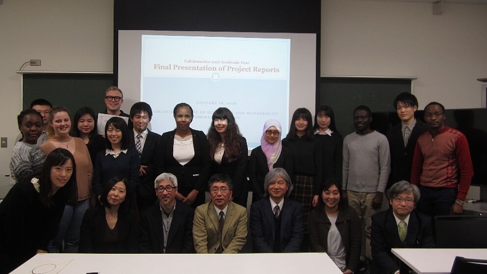 Foto (Universität Tohoku): Teilnehmende Studierende des "Global Program in Economics and Management" (GPEM) an der Universität Tohoku mit dem GPEM-Prüfungskomitee. Die ersten drei Studierenden aus Paderborn nahmen daran im Rahmen des neuen deutsch-japanischen Doppelmaster-programms erfolgreich teil: Sophie Sterr (zweite Reihe, zweite von links), Dan Thao Luu (dritte Reihe, zweite von links) und Jannik Adams (hinten mit Urkunde „Best Presentation Award“).