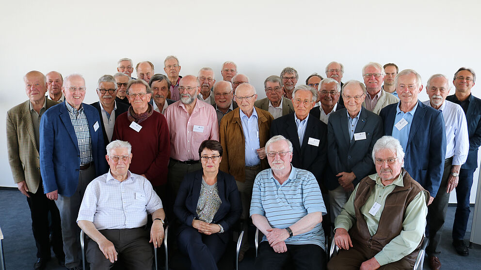 Foto (Universität Paderborn, Juliane Fröhling): Zum 20. Emeriti-Treffen kamen 29 Ehemalige auf den Campus zurück, um Kolleginnen und Kollegen von früher wiederzusehen und Neuigkeiten rund um ihre alte Hochschule zu erfahren.