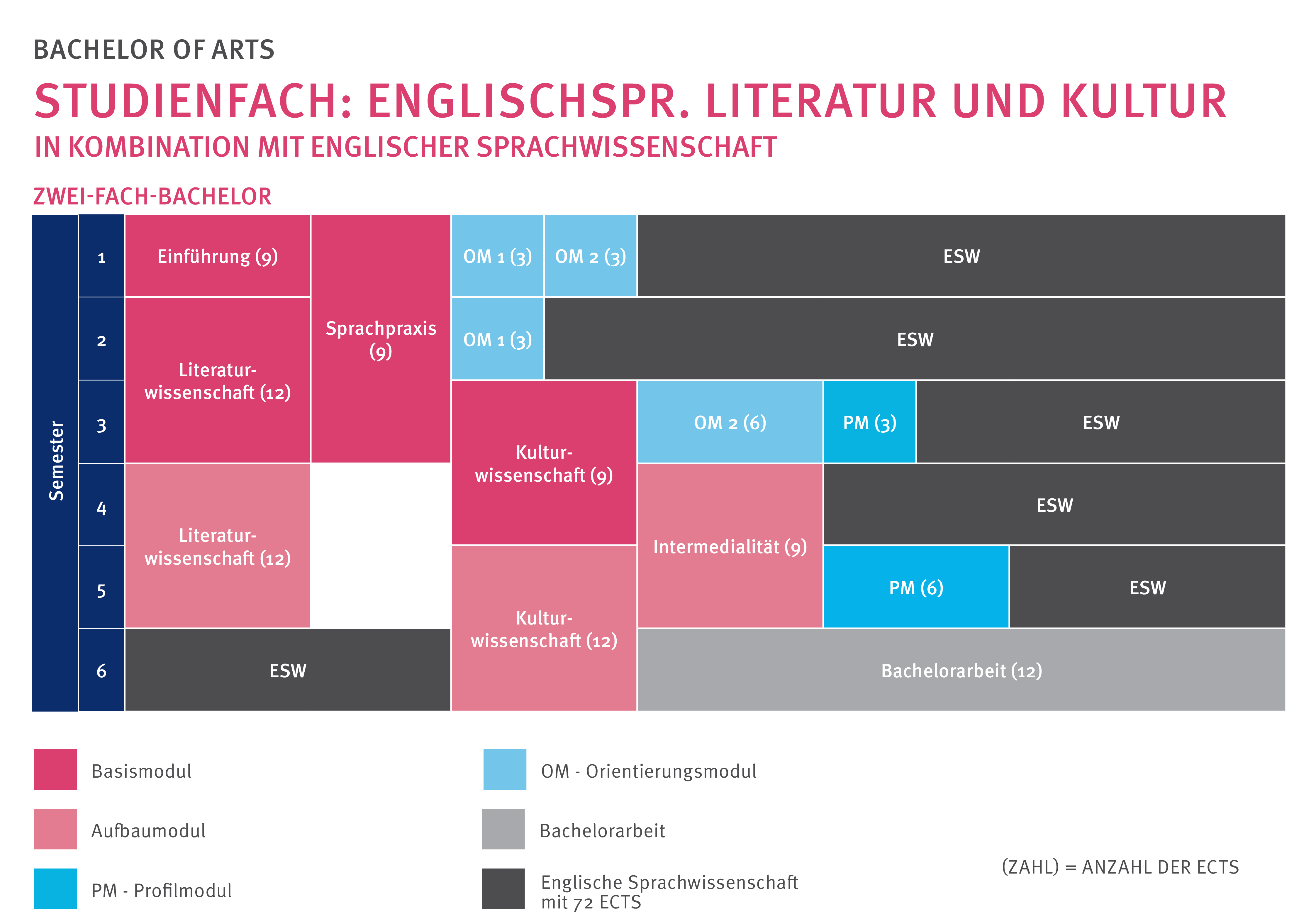 Das Fach Englischsprachige Literatur und Kultur ist ein Anteilsfach im Rahmen des Zwei-Fach-Bachelor-Studiengangs der Fakultät Kulturwissenschaften. Auf der Webseite des Zwei-Fach-Bachelors Kulturwissenschaften findest du allgemeine Informationen zum Studiengang, zur Fächerübersicht und zu den Kombinationsmöglichkeiten.