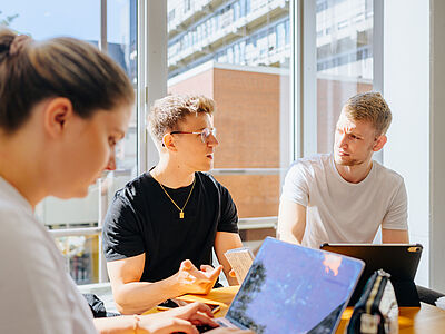 Im Laufe des Studiums tauchen immer mal wieder Fragen zur beruflichen Orientierung auf. In Veranstaltungen, Praxisprojekten und Unternehmensbesuchen sowie im Job- und Karriereportal kannst du mögliche Berufs- und Tätigkeitsfelder kennenlernen und deine persönlichen Interessen und Stärken herausarbeiten.