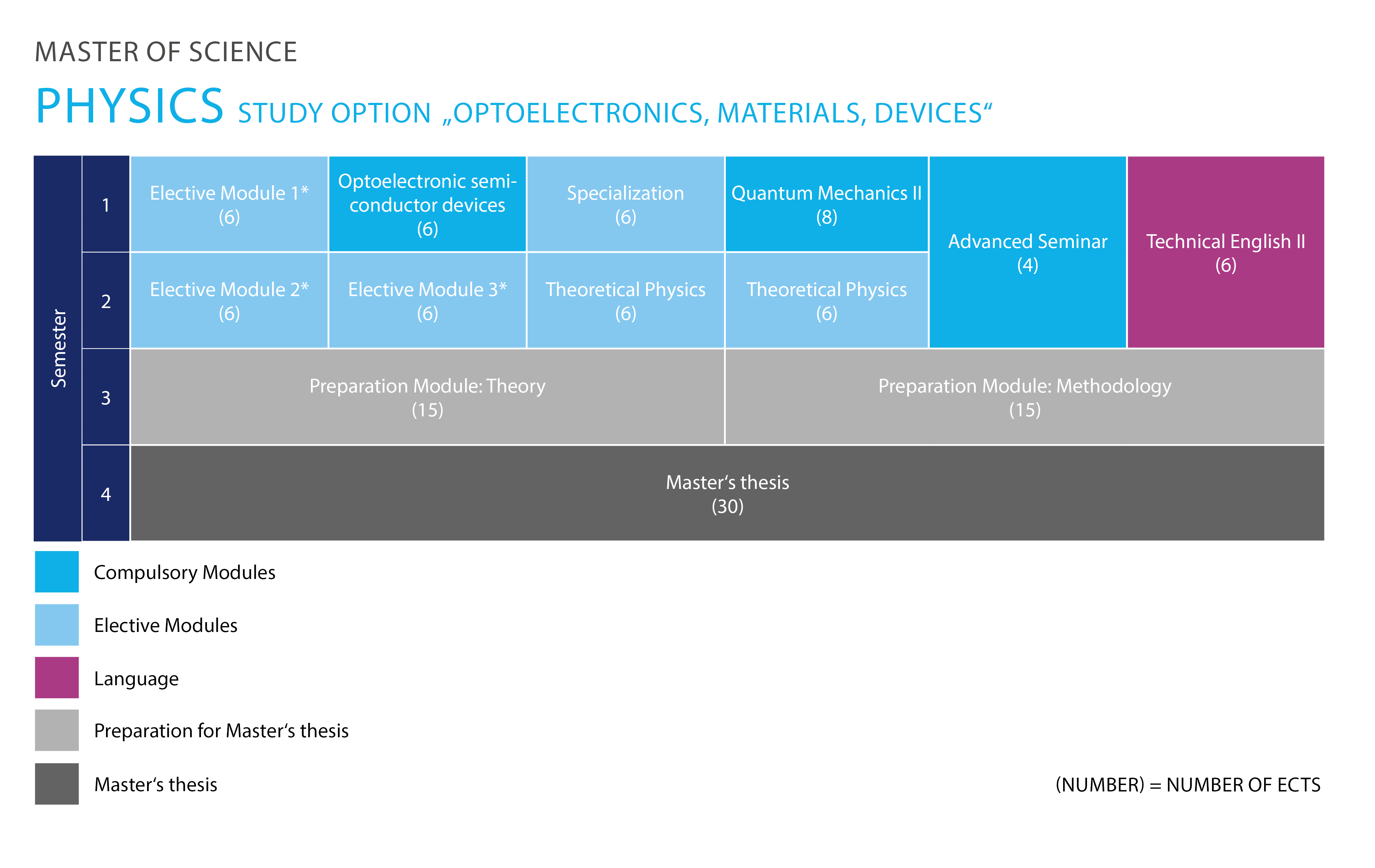 *Wird die Studienvariante „Optoelectronics, Materials, Devices“ gewählt, gibt es die folgenden Wahlmöglichkeiten innerhalb der Elective Modules: