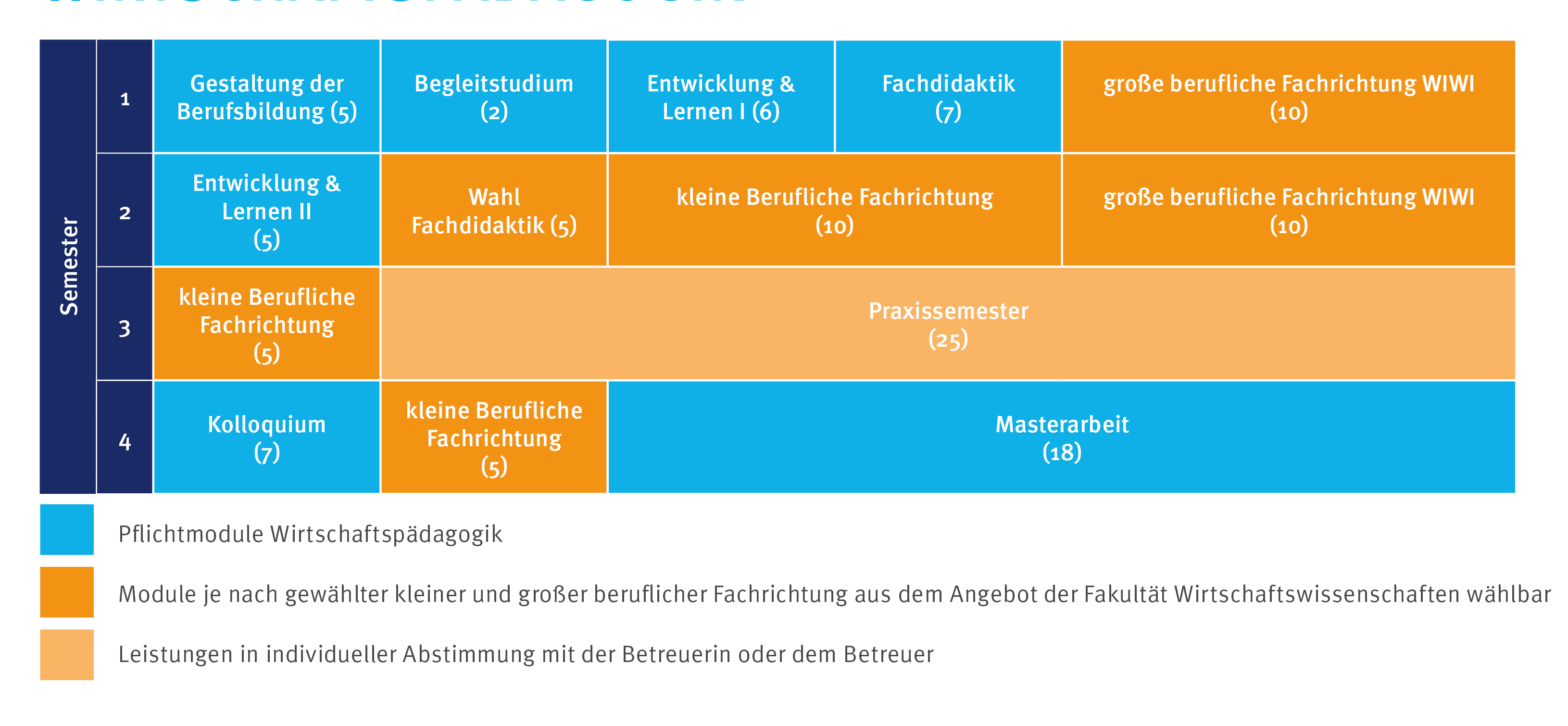 In der großen beruflichen Fachrichtung Wirtschaftswissenschaften kannst du aus dem gesamten Modulangebot des Studienfeldes Wirtschaftswissenschaften wählen.