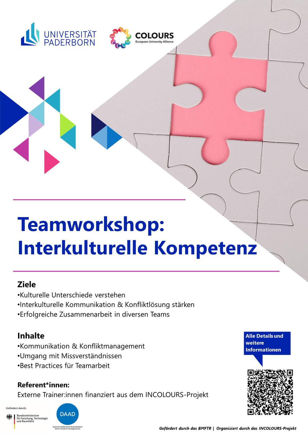 | Termine nach Vereinbarung | Interkulturelle Kompetenz | Teams oder Arbeitsgruppen aus allen Bereichen der Universität Paderborn |