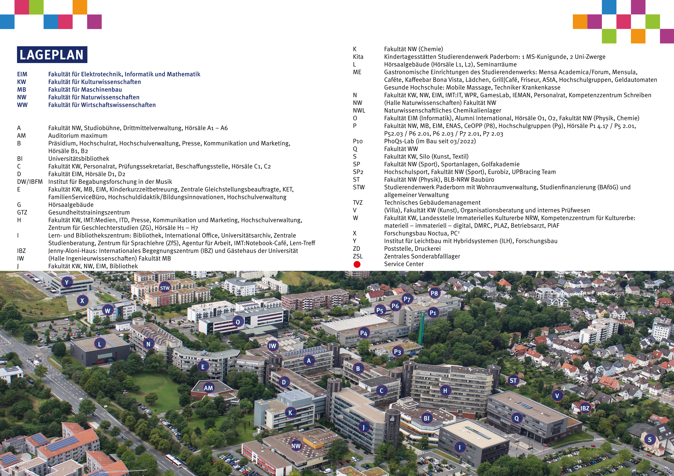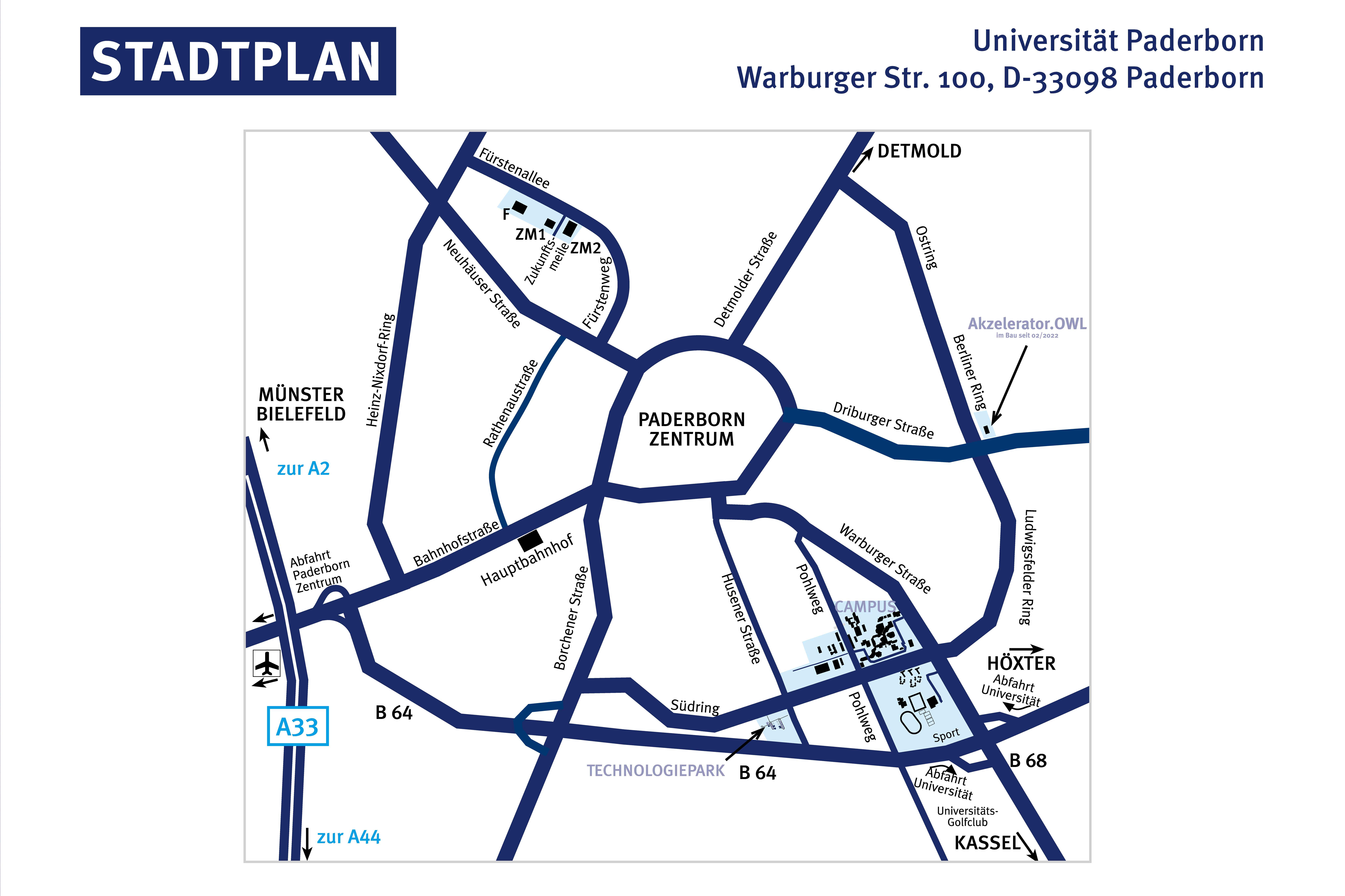 Den aktuellen Campus-Lageplan der Universität Paderborn hier als PDF herunterladen.