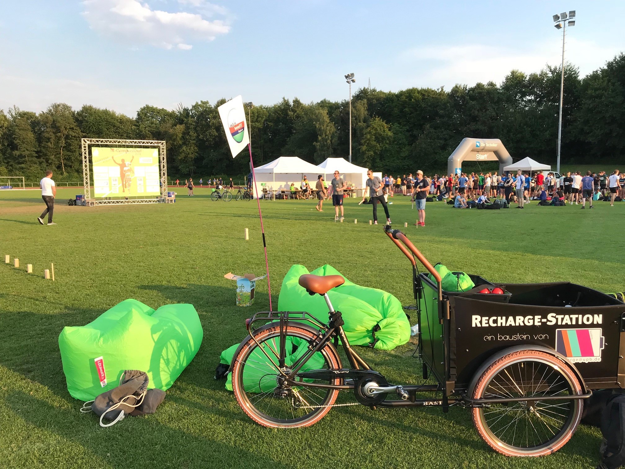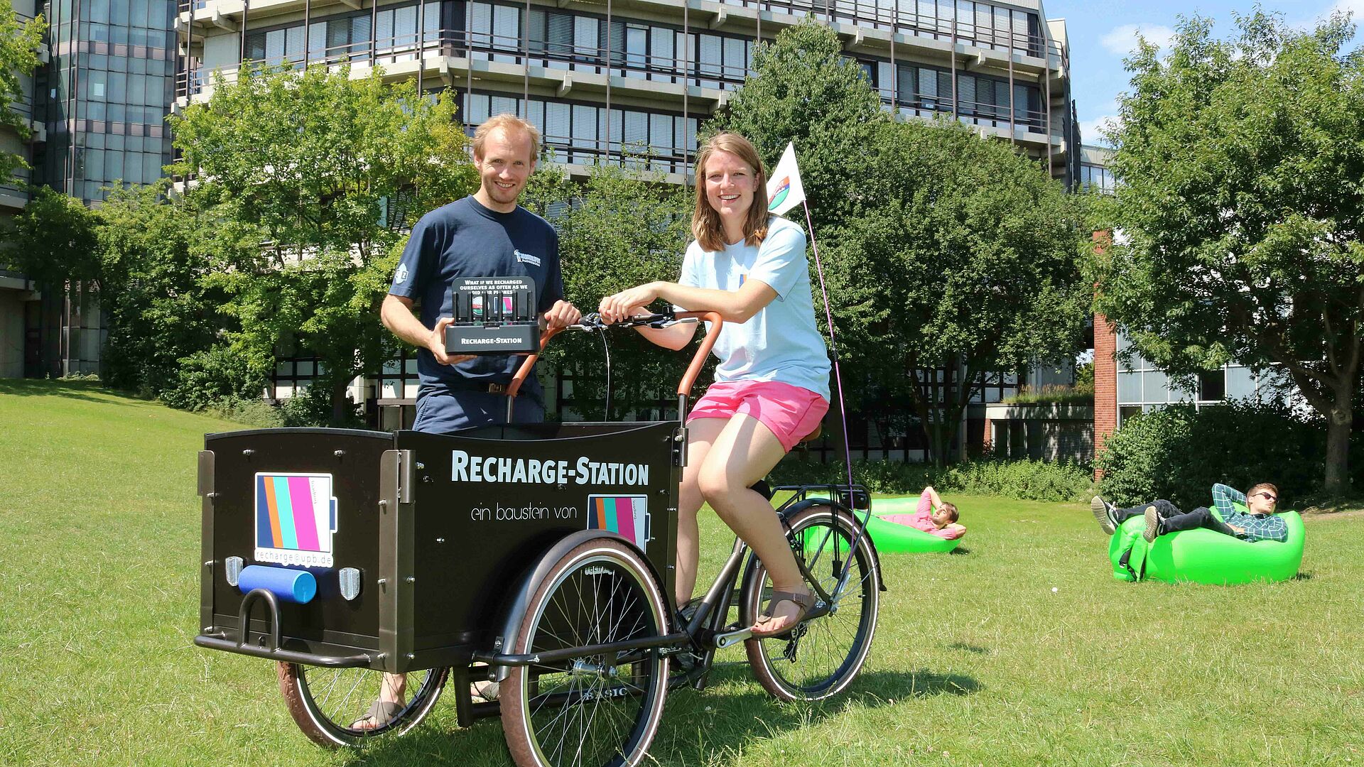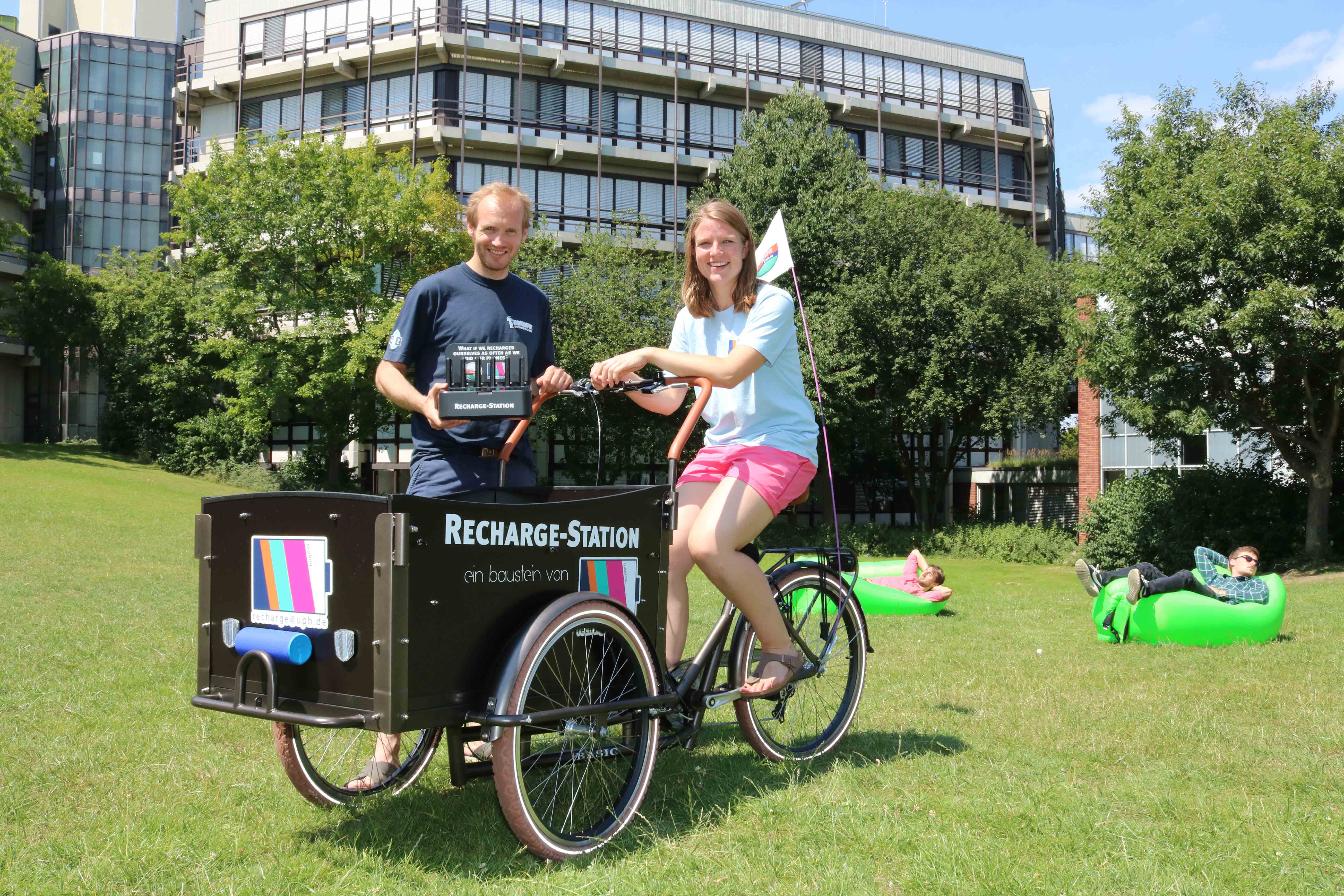 Die Recharge-Station ist unser Lastenfahrrad, du findest sie regelmäßig DI & DO in der Mittagspause auf dem Campus!