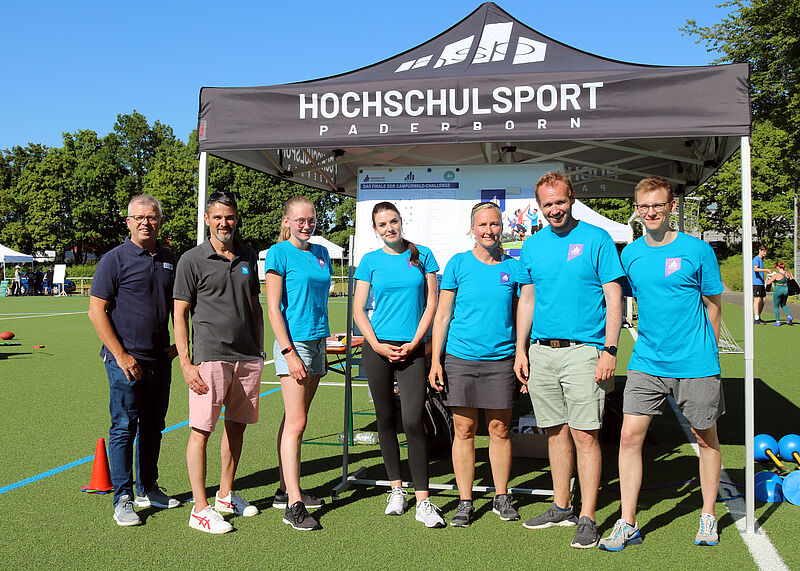 Bei hochsommerlichen Temperaturen waren rund 200 Studierende der Universität Paderborn (UPB) auf dem Sportcampus zwischen Warburger Straße und Pohlweg aktiv. Das Ziel: Im Rahmen der Campuswald-Challenge galt es, durch das aktive Wahrnehmen von Bewegungsangeboten 3000 Baumpflanzen zu sammeln.