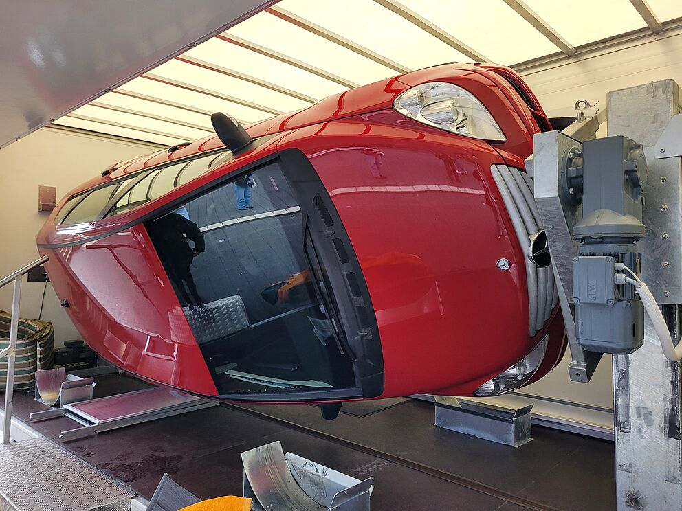 - Rettungssimulator - Wie befreien Sie sich nach einem Unfall aus einem Pkw in Dachlage? Hier können Sie es ausprobieren und lernen.
