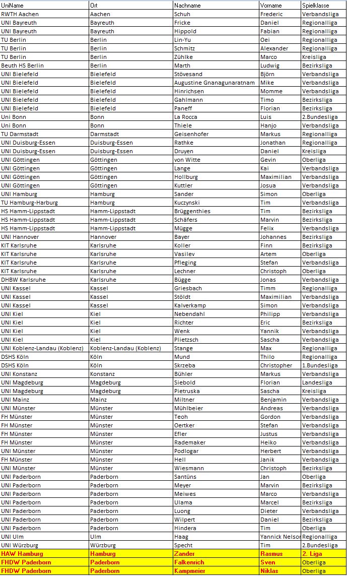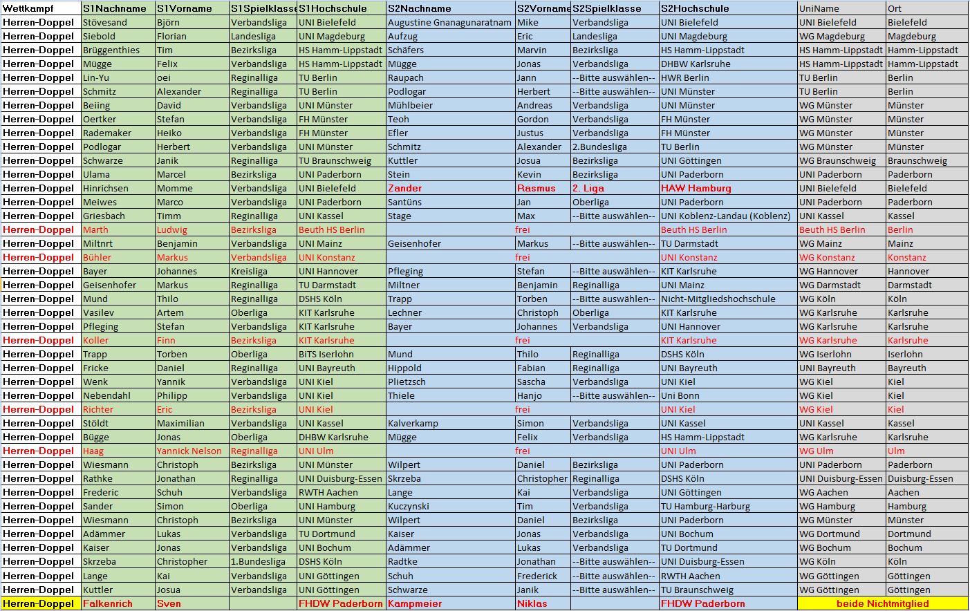 Hier findet ihr die Teilnehmerlisten für die DHM Badminton an diesem Wochenende!