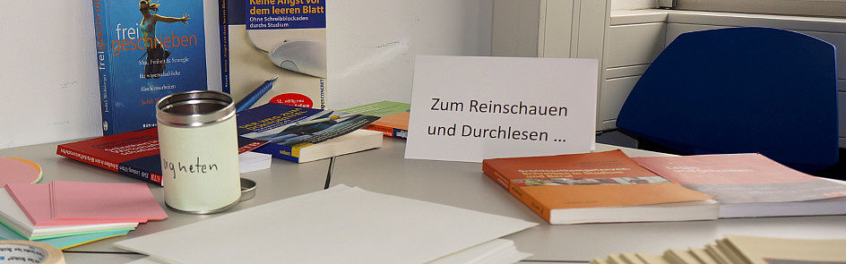 Hier finden Sie eine Auswahl an Angeboten und Literatur, die Ihnen beim Schreiben helfen können - egal ob Sie am Anfang des Schreibprozesses stehen, nicht mehr weiter wissen oder Ihrer Arbeit den letzten Schliff verpassen wollen. Die Kurz-Rezensionen der Schreibratgeber sollen Ihnen dabei helfen, sich einen ersten Eindruck über die Literatur zu verschaffen und das für Sie passende Buch auszuwählen.