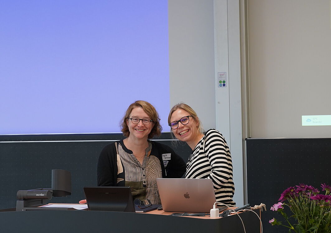 An ihren Vortrag schloss sich eine rege Diskussion an, an der sich sowohl die ungefähr 75 im Hörsaal Anwesenden als auch die circa 40 über Zoom Zugeschalteten beteiligten. So illustrierte die Diskussion den von allen Akteur:innen gewünschten Austausch. Dabei wurden nicht nur Aspekte des Vortrags aufgegriffen, sondern auch Anregungen zu weiterführenden Diskursen für den Fortlauf der Reihe mitgenommen.