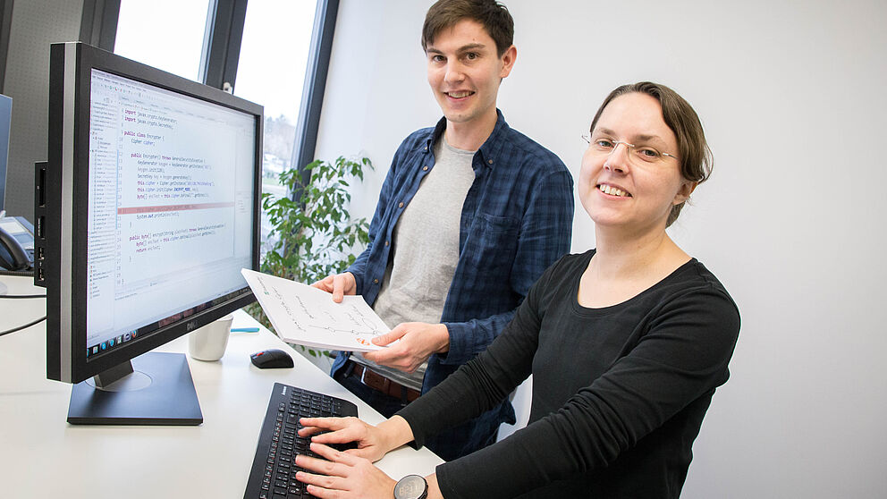 Foto (Fraunhofer IEM): Das Fraunhofer IEM (hier Johannes Späth und Dr. Claudia Priesterjahn) arbeitet an der Marktreife von CogniCrypt.