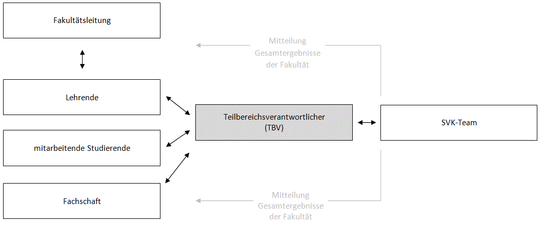 - Ebene 1: Die Basisebene besteht aus den Fachschaften, mitarbeitenden Studierenden oder Lehrenden, die für die Organisation und Durchführung der SVK an den Fakultäten verantwortlich sind.