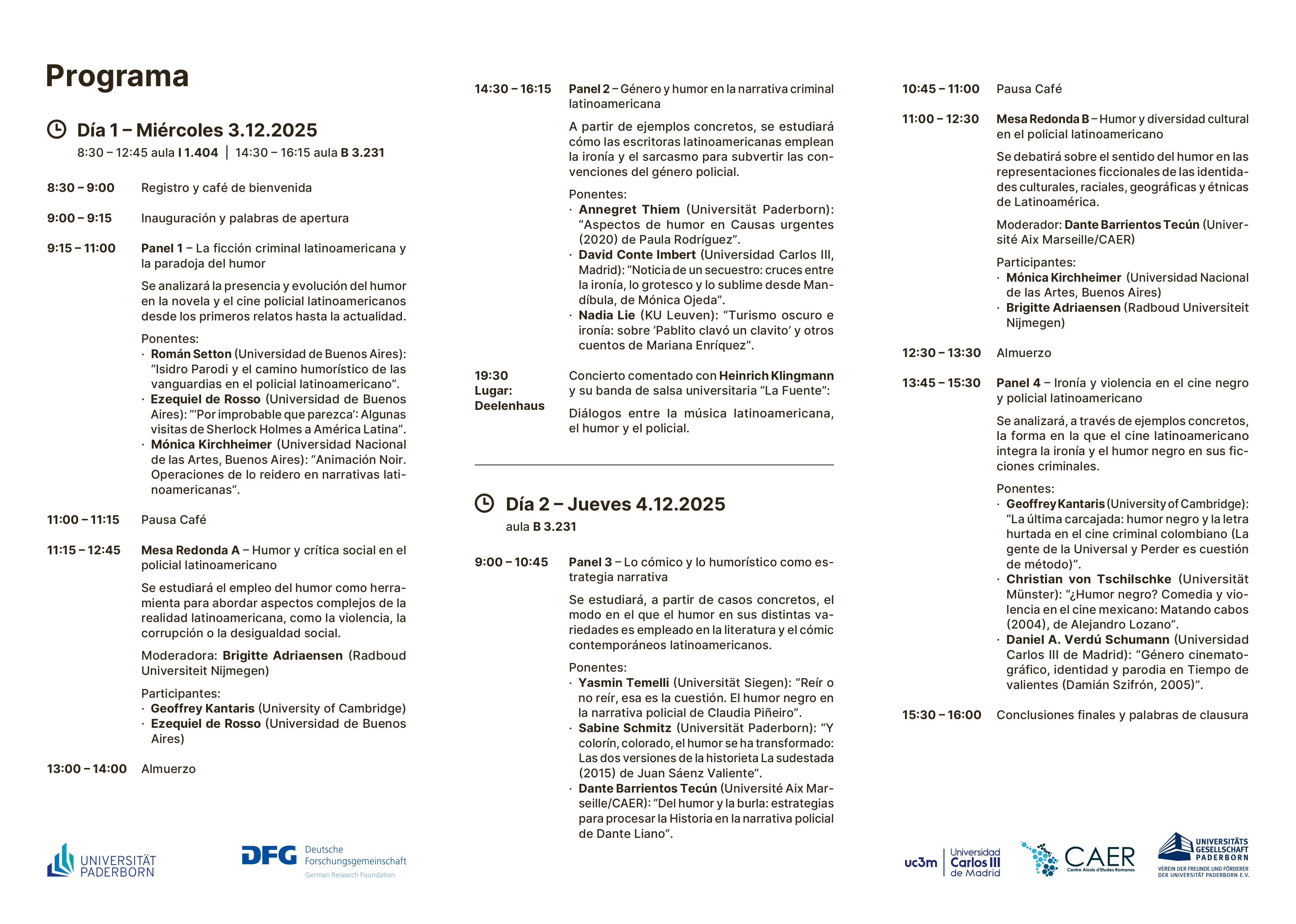 Organisiert wird die Tagung von Prof. Dr. Sabine Schmitz von der Universität Paderborn, Prof. Dr. Daniel Verdú Schumann von der Universidad Carlos III in Madrid und Prof. Dr. Dante Barrientos Tecún von der Université Aix Marseille.