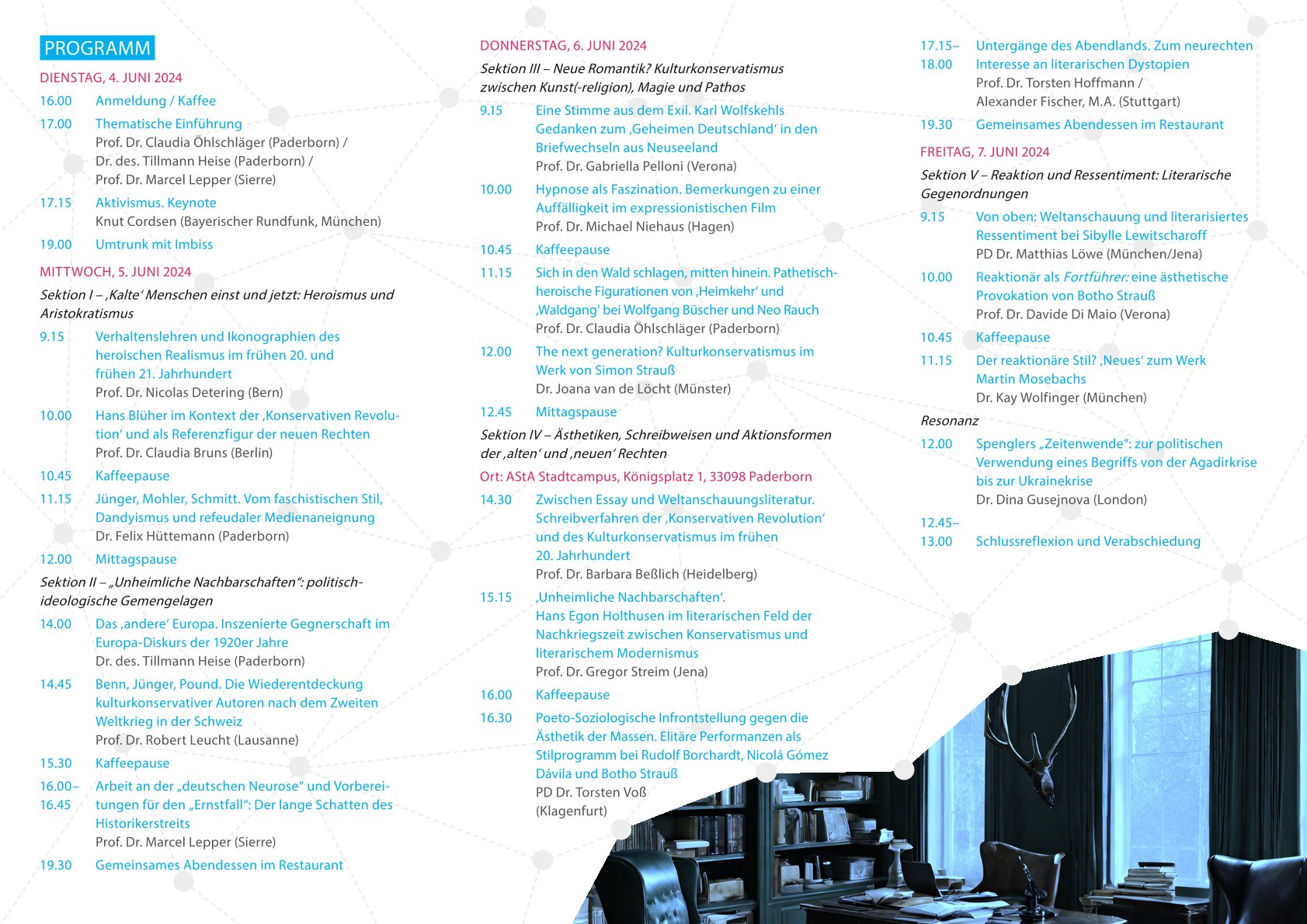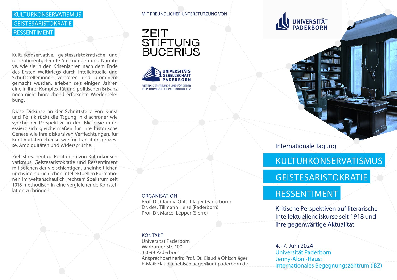 Die Veranstaltung, die durch die „Zeit-Stiftung Bucerius“ und die Universitätsgesellschaft Paderborn gefördert wird, setzt bei einem aktuellen, politisch wie gesamtgesellschaftlich herausfordernden Befund an: „Kulturkonservative, geistesaristokratische und ressentimentgeleitete Strömungen und Narrative, die in den Krisenjahren nach dem Ende des Ersten Weltkriegs durch Intellektuelle und Schriftsteller*innen prominent gemacht wurden, erleben seit einigen Jahren eine Renaissance“, so Öhlschläger.