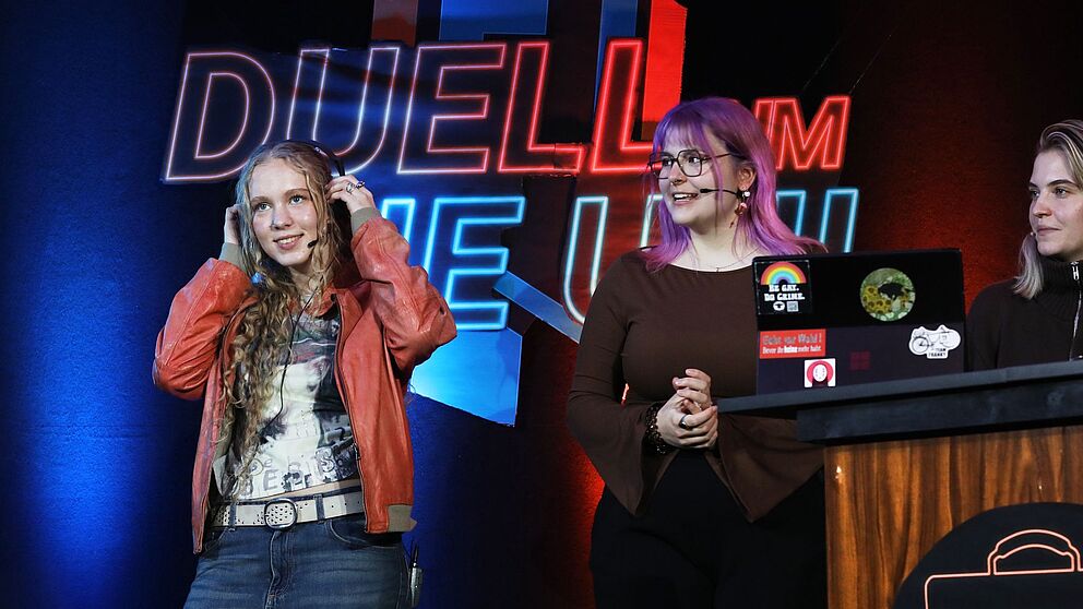 Am Donnerstag, 5. Februar, verwandelt sich die Universität Paderborn in eine große Showbühne. Das diesjährige Team des Medienpraxis-Kurses „Live@UPB“ präsentiert einmalig seine eigene Liveshow „Duell um die Uni“. In dem interaktiven Format treten zwei Teams aus Studierenden und Mitarbeitenden in unterhaltsamen Quizrunden und Minispielen gegeneinander an. Die Liveshow wird ab 20 Uhr auf dem YouTube-Kanal der Universität Paderborn ausgestrahlt.