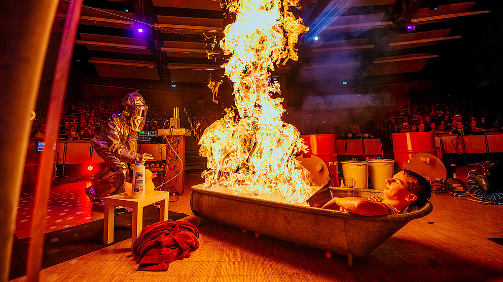 Was passiert, wenn ein junger Physiker ganz allein ein Haus gegen Eindringlinge verteidigen muss? Es wird laut und explosiv, denn das Team der Event-Physik der Universität Paderborn lädt zu seiner neuesten Show im Audimax ein.