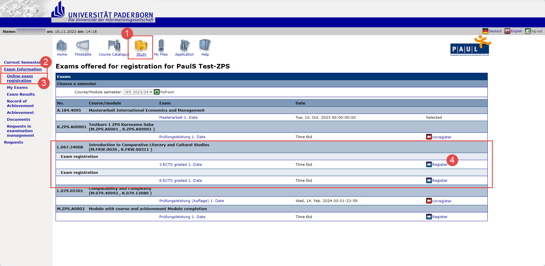 Die Prüfungsanmeldung für Austauschstudierende erfolgt über PAUL unter "Studium > Prüfungsverwaltung > Prüfungsanmeldung".